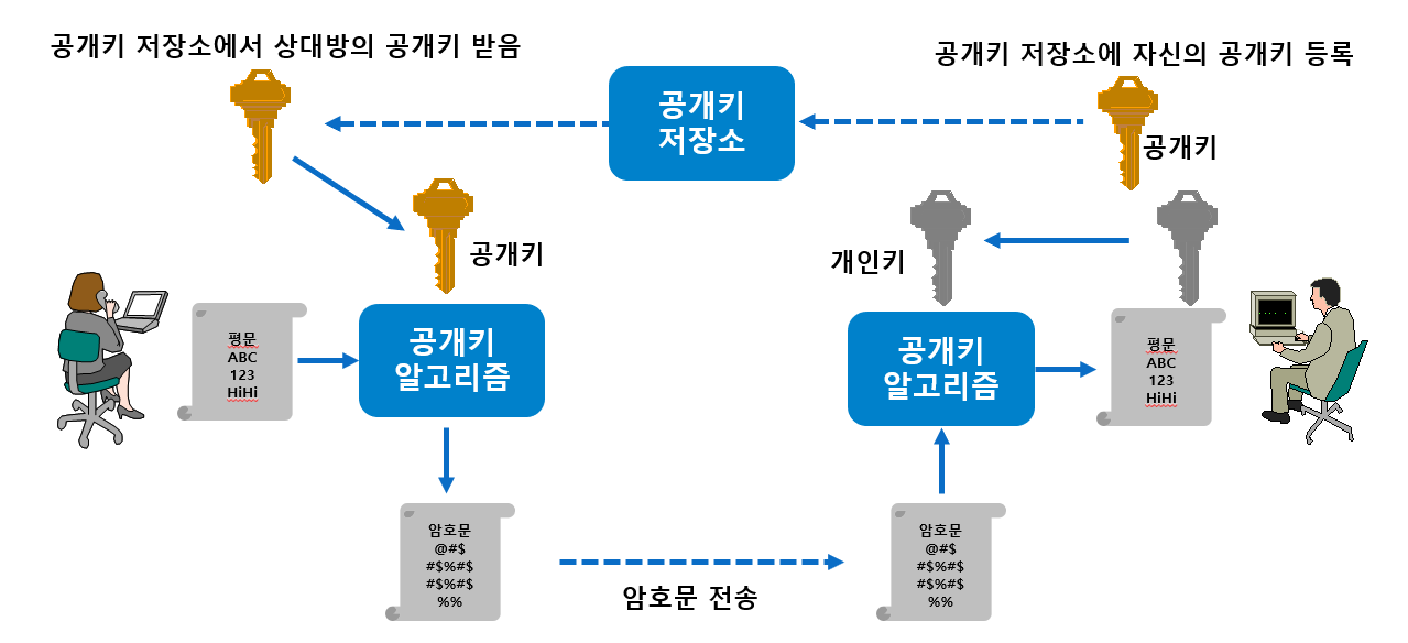 1. 송신자, 수신자는 공개키 저장소에 자신의 공개키를 등록한다.