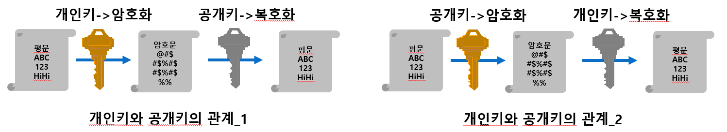 - 암호화 키와 복호화 키가 서로 다름