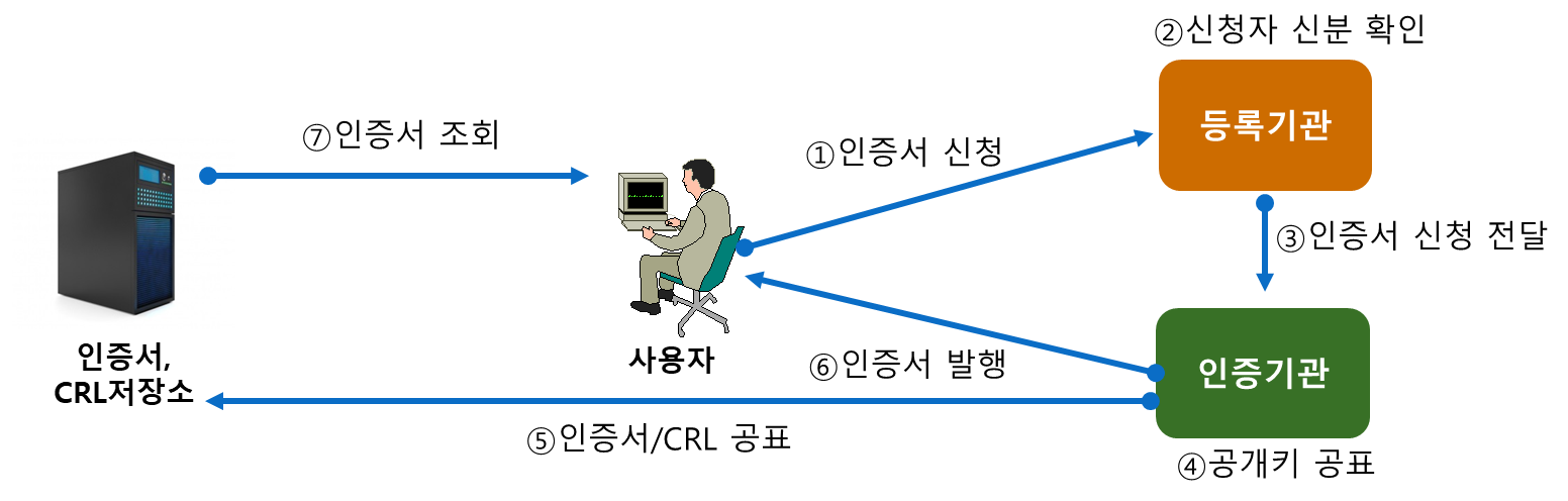 ⑥ 사용자는 인증기관으로부터 인증서를 발행한다.